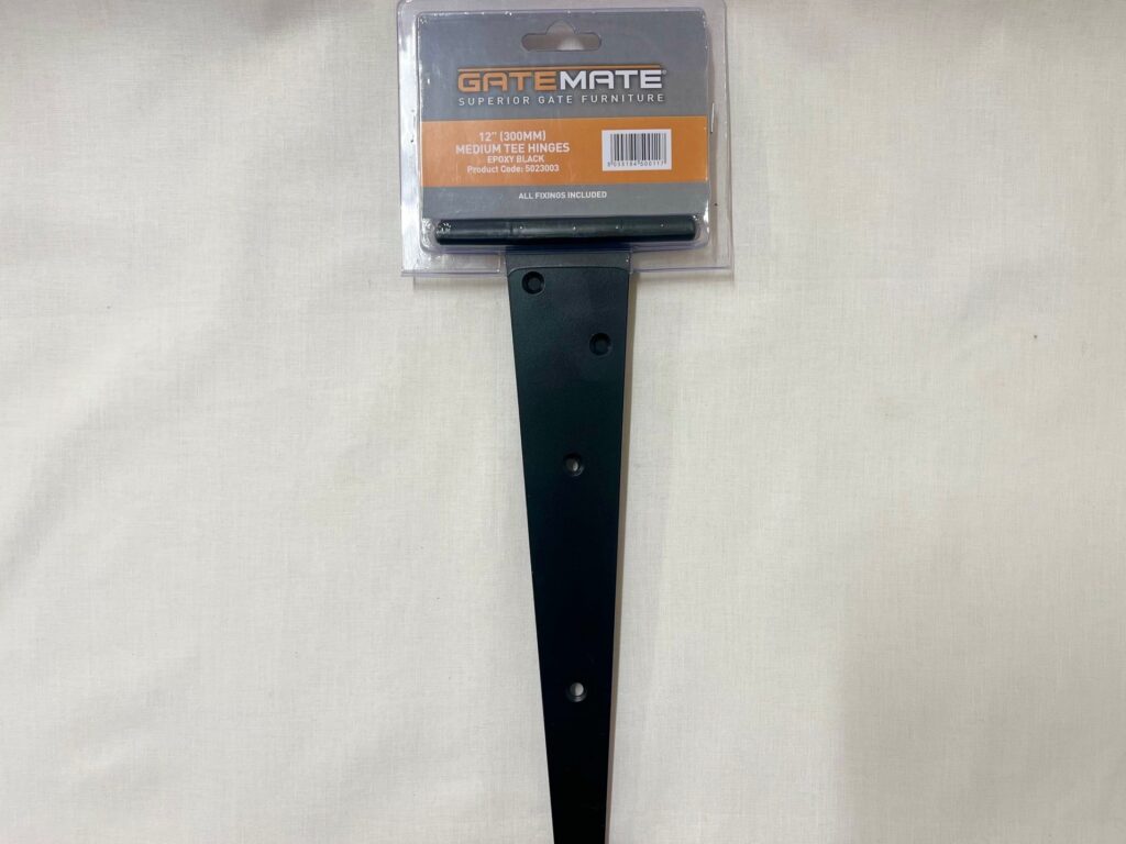 At John Bright Fencing, we sell heavy duty tee hinges in different sizes, depending on your needs! The most popular size is 12″ and it’s recommended to use for a 3′ x 3′ Palisade garden gate.
