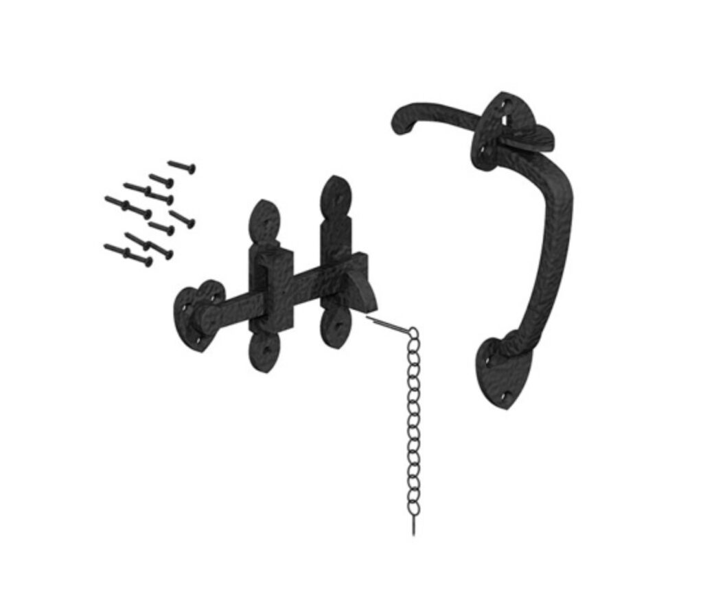 A delightful example of classical metalwork, this Suffolk Gate Latch combines quaint heart shaped fixing plates with the robust, durability of cast iron. The set has a mat black finish and features a chain and lock pin for added privacy.