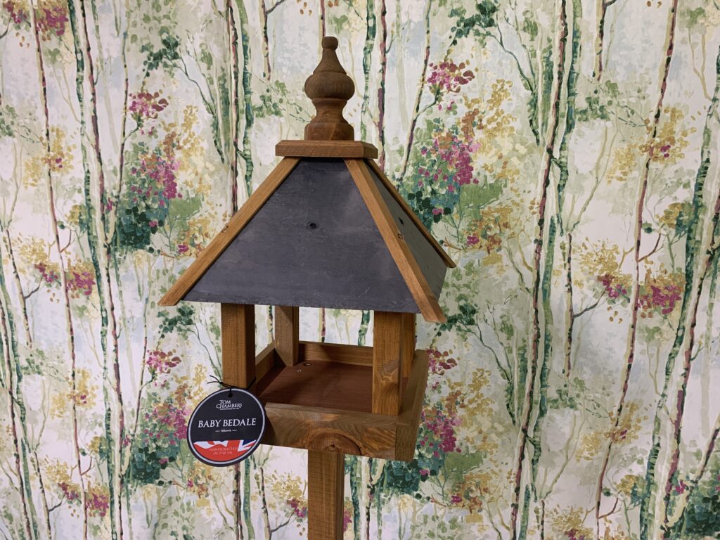 Entice a range of birdlife into your garden with this popular bird table. Tom Chamberss Baby Bedale is a very attractive free standing bird table with a slate roof, a large, flat surface and drainage channels to keep food dry and fresh.