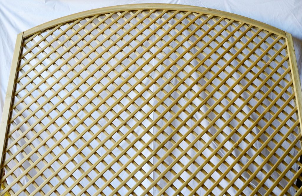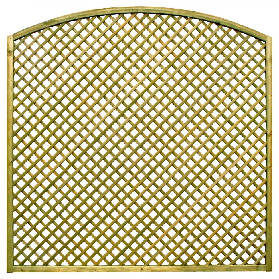 Bowood trellis is a decorative, tanalised, European trellis with a curved top and made of small diamonds.