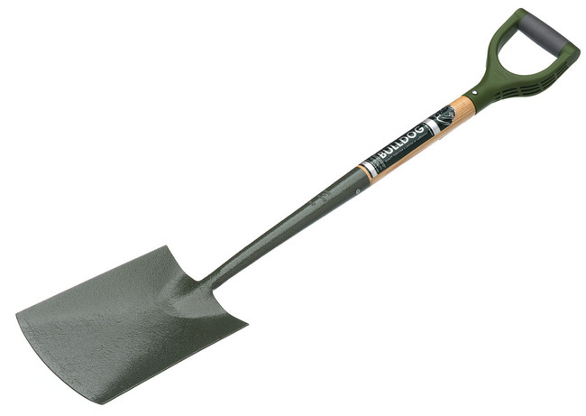 The bulldog solid forged digging spade is fitted with a forward tilt ergo grip handle to help reduce stress when digging.