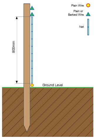80cm high, galvanised netting, when added with 2 strands of barbed wire above makes a safe secure fence.