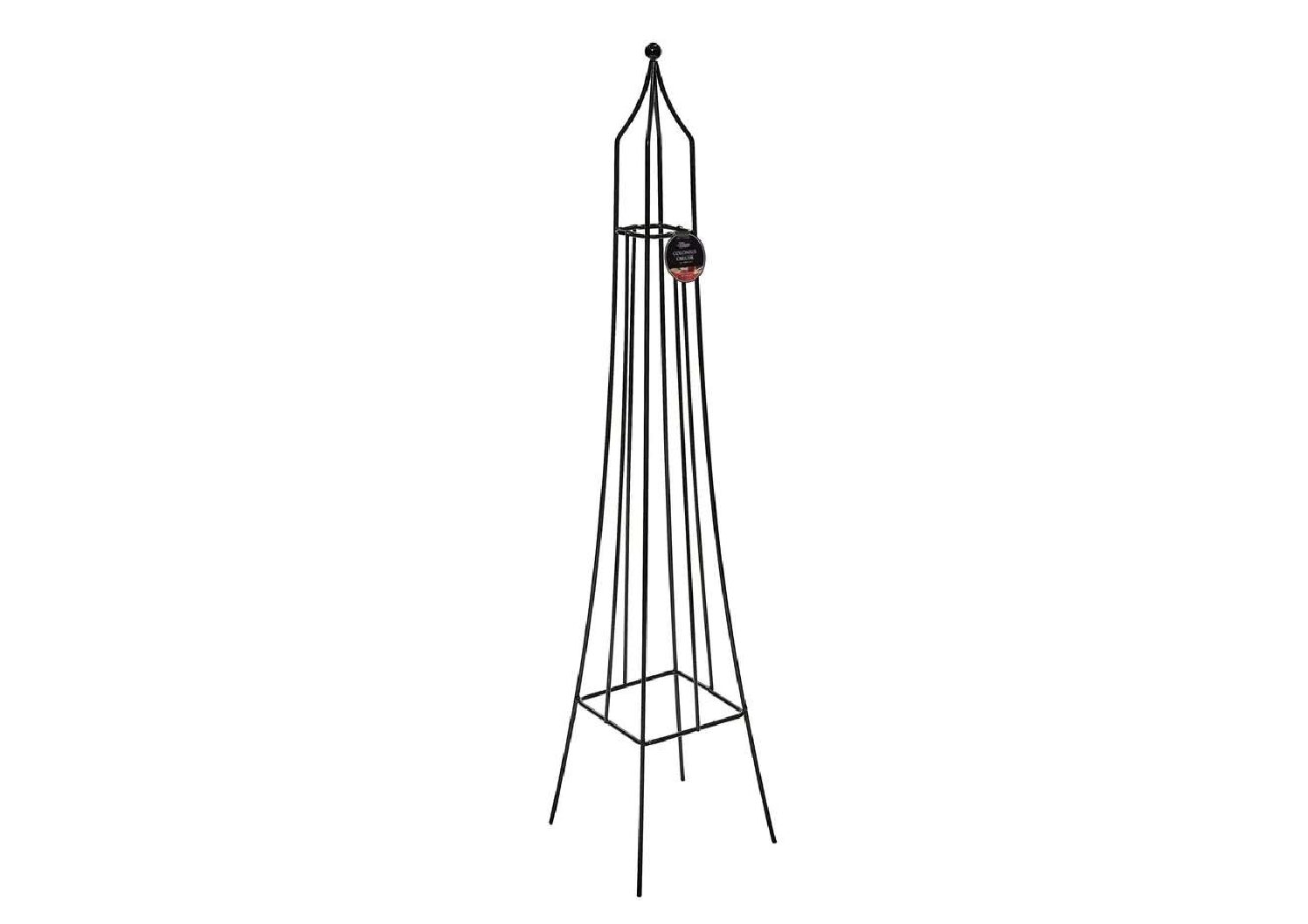 This small Colonius Obelisk stands at 1.3m tall and is an elegant addition to your garden. This metal garden obelisk comes in black, making it versatile and easily adaptable among many different plants, including vertical ones. With its solid construction, this small garden obelisk is weatherproof.