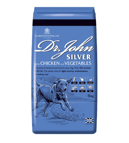 Dr. John Silver Chicken with Vegetables is a lighter maintenance diet for working dogs.