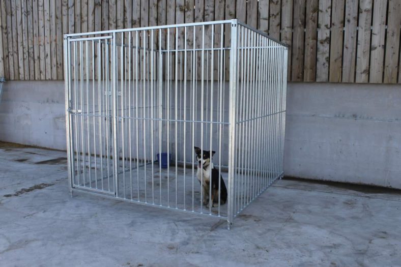 Our galvanised Dog Run panels are available as a front panel with one or two gates alongside rails or side panels which are just railed.