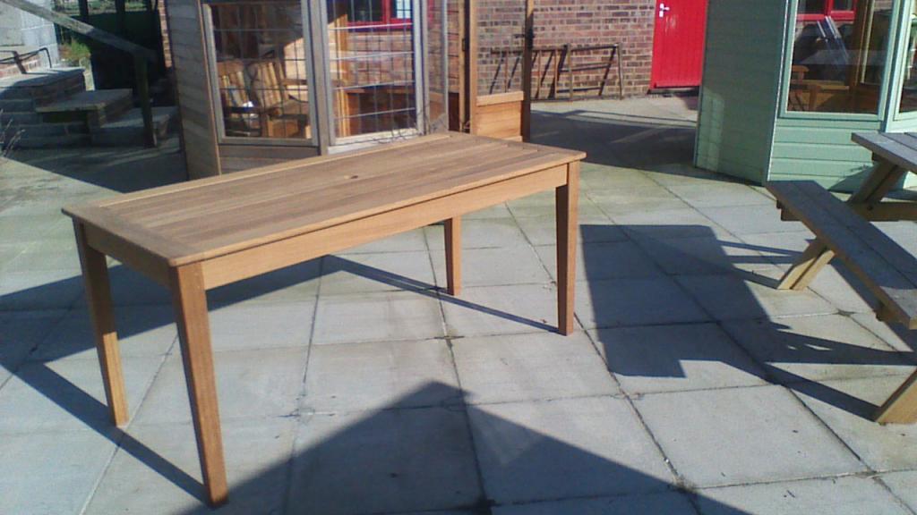 The Iroko hardwood dining table, made in our on site workshop.
