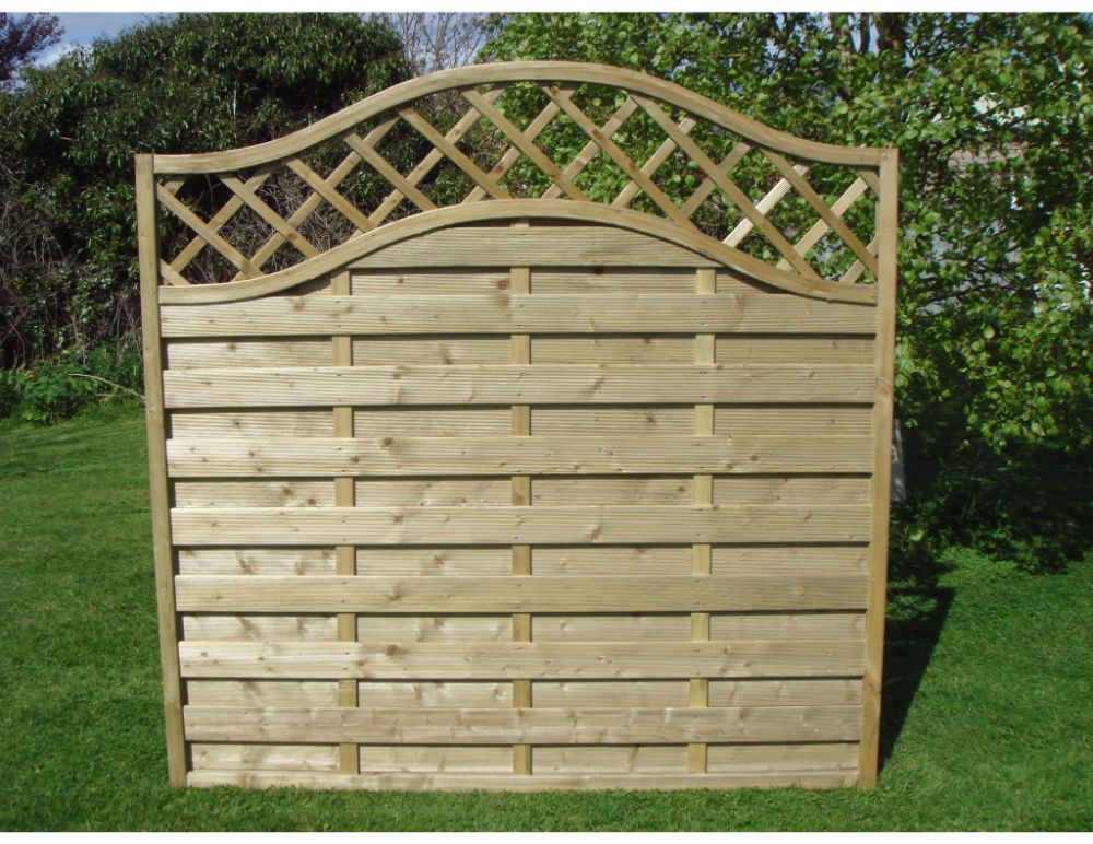 The Lewesdon Fence Panel is a smooth topped panel with a section of large trellis at the top. It would provide an attractive backdrop of all your favourite plants. It measures in total 1.8m high and 1.8m wide, and is made from pressure treated tanalised timber which requires no further treatment.