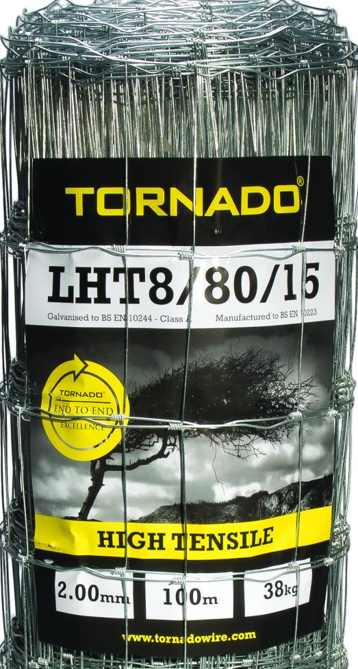 Tornado LHT Fence is manufactured with high tensile wire which strains tighter than mild steel and so requires fewer intermediate posts, making it quicker to erect. It does not stretch with weathering so does not need to be retightened annually. Featuring the traditional and cost-effective hinge joint, which enables the netting to be turned out or cranked for use in special applications.