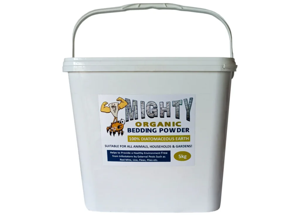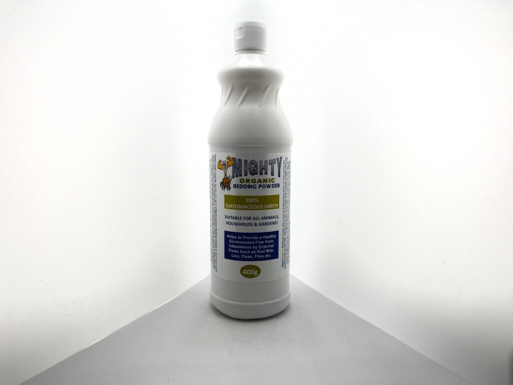 Mighty Organic Bedding Powder is safe to use with all pets, poultry, horses, and livestock. You can sprinkle it over animal bedding, in dust baths, nest boxes and throughout animal housing, as well as directly onto animals skin, or mix it into their feed to aid in the prevention of internal parasites and promote general good health.