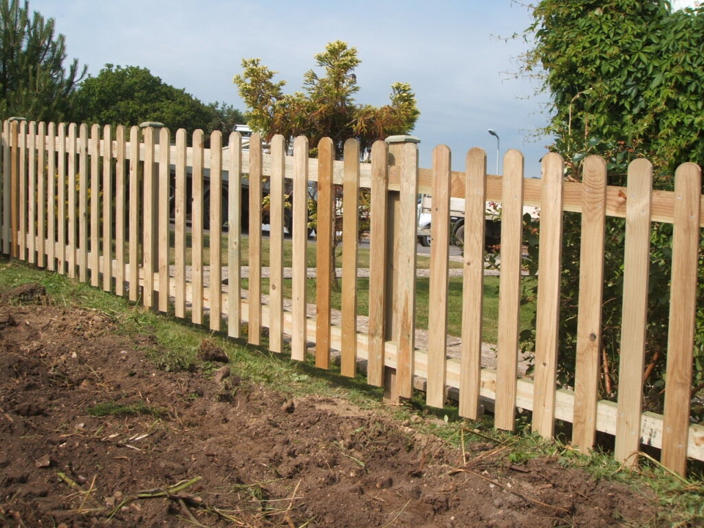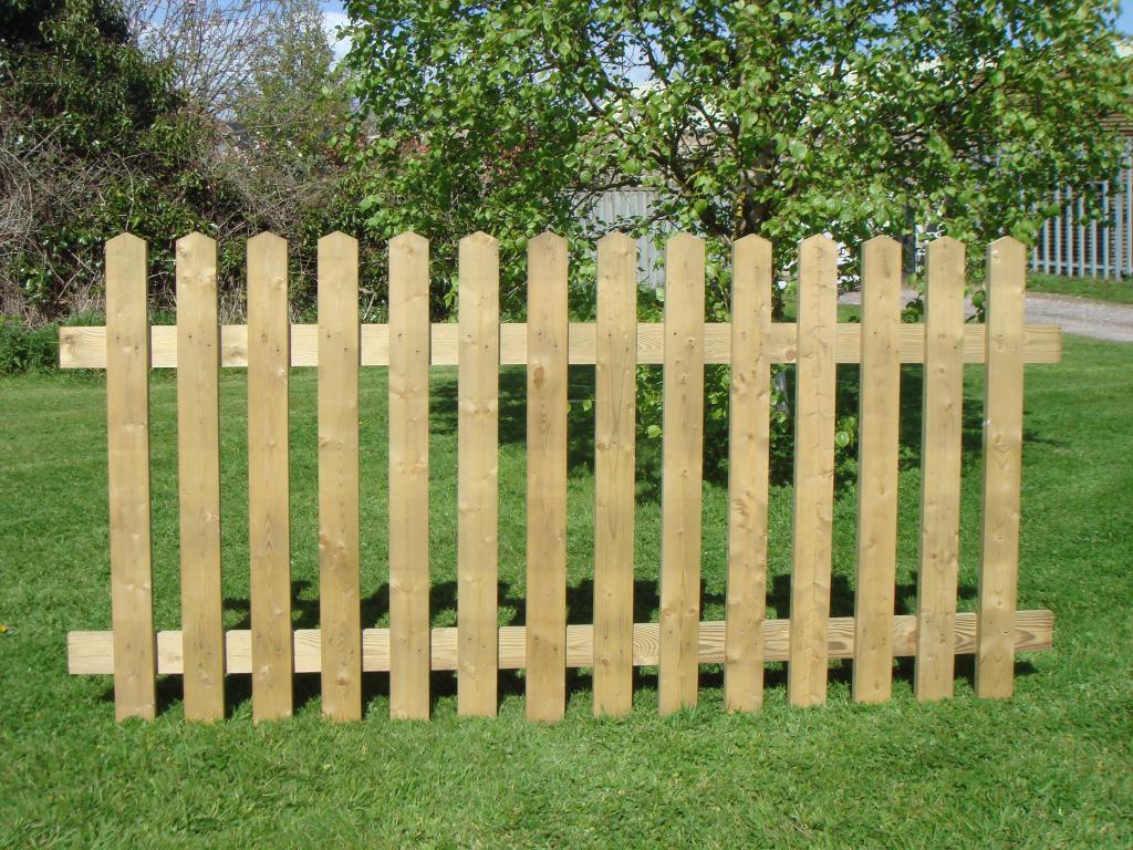 The palisade panels are 1770mm (approx. 5’9″) wide and 900mm (3′) high, pressure treated to preserve.