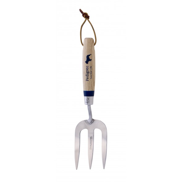 A stylish, rust resistant stainless steel hand fork with varnished FSC ash handle and leather hanging loop. Made under the Pedigree label by British manufacture Bulldog who are renowned for their good quality, long lasting garden tools. Ideal for weeding and working in small areas.