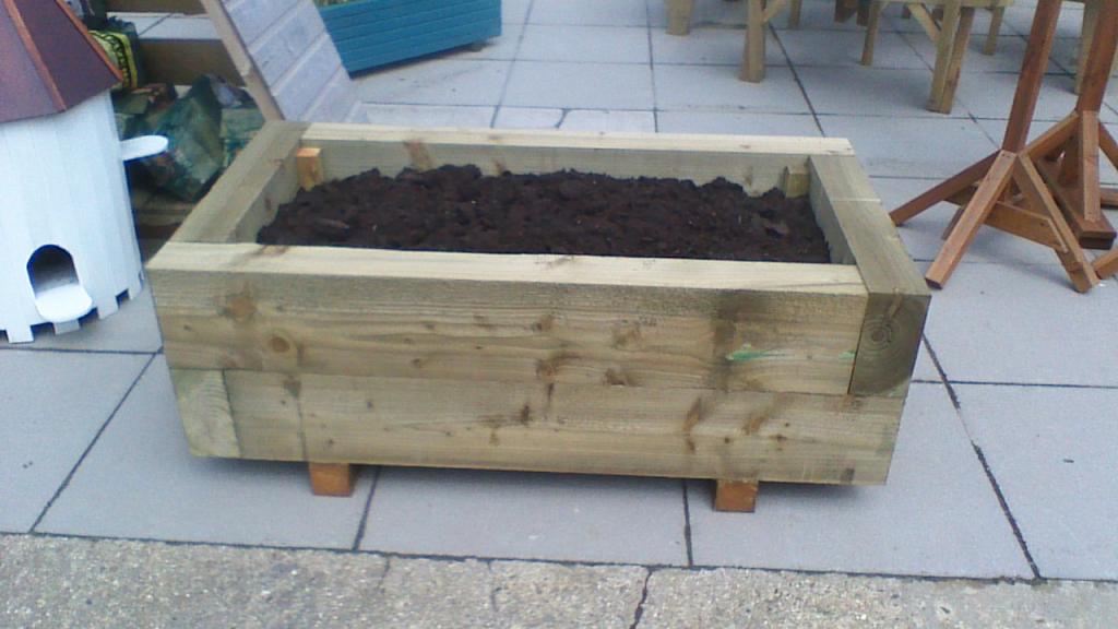 Strong and solid tanalised sleeper planter made from 200mm x 100mm pressure treated sleepers.