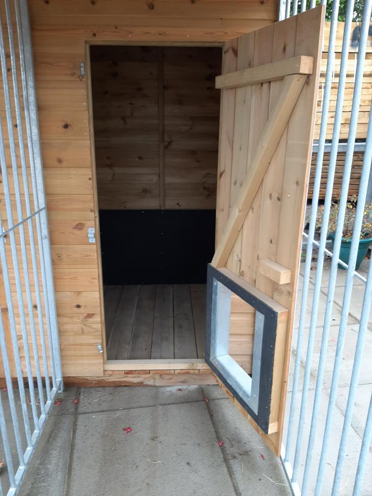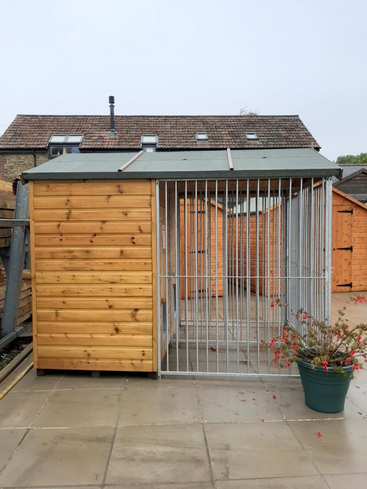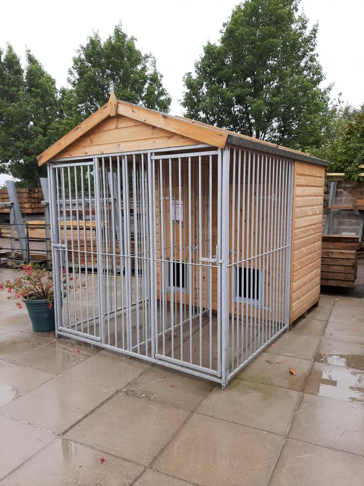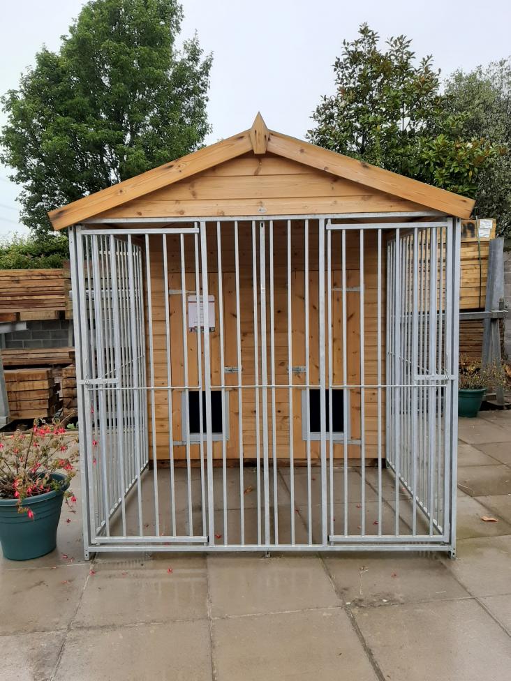 The Balmoral Dog Kennel (9′ X 6’6″) is a double kennel with two separate areas, with access through both the run and kennel sections. A sturdy, durable construction made from tanalised T.G.V cladding, galvanised run and felted roof. The Blamoral Dog Kennel is also available with a stokbord lining.