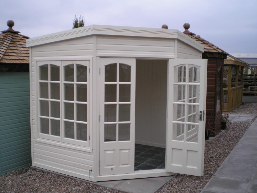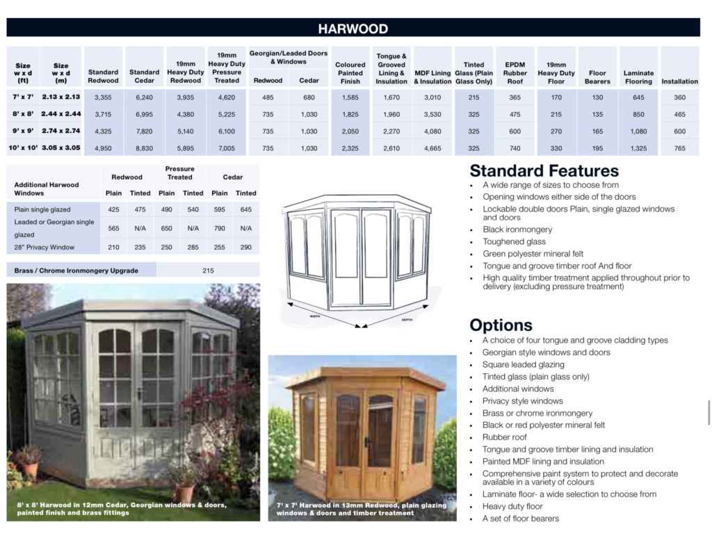 The Harwood is available in 4 sizes and is designed to fit into the corner of your garden.