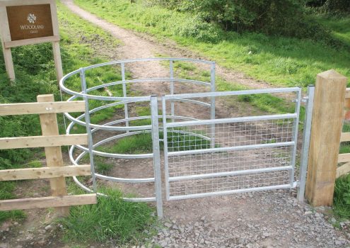 This Woodstock medium mobility galvanised kissing gate is heavy-duty and fully stock-proof in both directions. The gate and hoops are easy to install and operate: five large circular hoops allow easy manual wheelchair and standard pushchair access as well as motorbikes, making this metal kissing gate an excellent mobility option. The use of steel in this kissing gate’s design enables very heavy usage with little or no maintenance. Overall, this Woodstock Kissing Gate is ideal for a range of commercial and agricultural fencing situations.